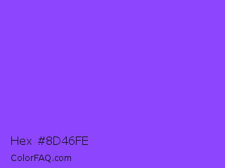 Hex #8d46fe Color is a light violet color and the nearest color is Navy Purple #9457eb. Hex code #8d46fe and RGB value is rgb(141,70,254). In RGB color space, this color is composed of 55% red, 27% green, 100% blue, In CMYK color space, this color is composed of 44% cyan, 72% magenta, 0% yellow , 0% black , In HSL color space, this color has a hue angle of 263° , 99% saturation and 64% lightness.