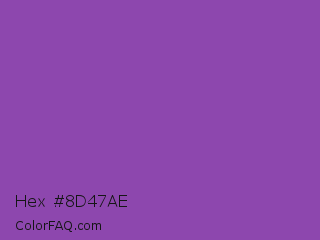 Hex #8d47ae Color is a normal purple color and the nearest color is Purpureus #9a4eae. Hex code #8d47ae and RGB value is rgb(141,71,174). In RGB color space, this color is composed of 55% red, 28% green, 68% blue, In CMYK color space, this color is composed of 19% cyan, 59% magenta, 0% yellow , 32% black , In HSL color space, this color has a hue angle of 281° , 42% saturation and 48% lightness.