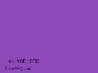 Hex #8d48bb Color is a normal purple color and the nearest color is Deep Lilac #9955bb. Hex code #8d48bb and RGB value is rgb(141,72,187). In RGB color space, this color is composed of 55% red, 28% green, 73% blue, In CMYK color space, this color is composed of 25% cyan, 61% magenta, 0% yellow , 27% black , In HSL color space, this color has a hue angle of 276° , 46% saturation and 51% lightness.