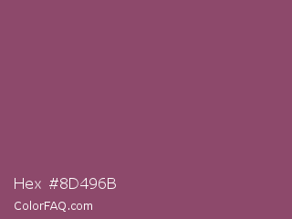 Hex #8d496b Color is a normal rose color and the nearest color is Twilight Lavender #8a496b. Hex code #8d496b and RGB value is rgb(141,73,107). In RGB color space, this color is composed of 55% red, 29% green, 42% blue, In CMYK color space, this color is composed of 0% cyan, 48% magenta, 24% yellow , 45% black , In HSL color space, this color has a hue angle of 330° , 32% saturation and 42% lightness.