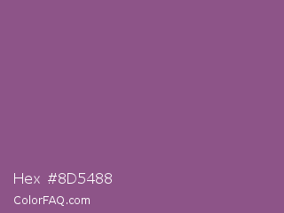 Hex #8d5488 Color is a normal magenta color and the nearest color is Razzmic Berry #8d4e85. Hex code #8d5488 and RGB value is rgb(141,84,136). In RGB color space, this color is composed of 55% red, 33% green, 53% blue, In CMYK color space, this color is composed of 0% cyan, 40% magenta, 4% yellow , 45% black , In HSL color space, this color has a hue angle of 305° , 25% saturation and 44% lightness.