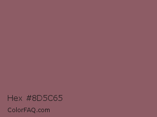 Hex #8d5c65 Color is a normal red color and the nearest color is Rose Taupe #905d5d. Hex code #8d5c65 and RGB value is rgb(141,92,101). In RGB color space, this color is composed of 55% red, 36% green, 40% blue, In CMYK color space, this color is composed of 0% cyan, 35% magenta, 28% yellow , 45% black , In HSL color space, this color has a hue angle of 349° , 21% saturation and 46% lightness.