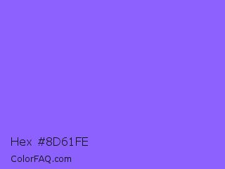Hex #8d61fe Color is a light indigo color and the nearest color is Navy Purple #9457eb. Hex code #8d61fe and RGB value is rgb(141,97,254). In RGB color space, this color is composed of 55% red, 38% green, 100% blue, In CMYK color space, this color is composed of 44% cyan, 62% magenta, 0% yellow , 0% black , In HSL color space, this color has a hue angle of 257° , 99% saturation and 69% lightness.