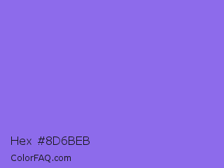 Hex #8d6beb Color is a light indigo color and the nearest color is Medium Purple #9370db. Hex code #8d6beb and RGB value is rgb(141,107,235). In RGB color space, this color is composed of 55% red, 42% green, 92% blue, In CMYK color space, this color is composed of 40% cyan, 54% magenta, 0% yellow , 8% black , In HSL color space, this color has a hue angle of 256° , 76% saturation and 67% lightness.