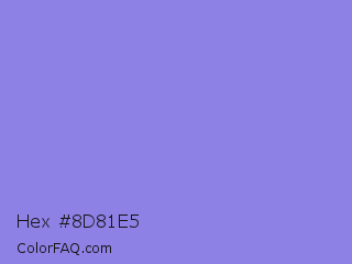 Hex #8d81e5 Color is a light indigo color and the nearest color is Chetwode Blue #8581d9. Hex code #8d81e5 and RGB value is rgb(141,129,229). In RGB color space, this color is composed of 55% red, 51% green, 90% blue, In CMYK color space, this color is composed of 38% cyan, 44% magenta, 0% yellow , 10% black , In HSL color space, this color has a hue angle of 247° , 66% saturation and 70% lightness.