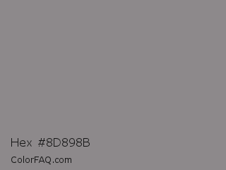 Hex #8d898b Color is a normal rose color and the nearest color is Taupe Gray #8b8589. Hex code #8d898b and RGB value is rgb(141,137,139). In RGB color space, this color is composed of 55% red, 54% green, 55% blue, In CMYK color space, this color is composed of 0% cyan, 3% magenta, 1% yellow , 45% black , In HSL color space, this color has a hue angle of 330° , 2% saturation and 55% lightness.
