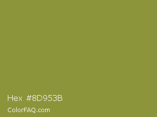 Hex #8d953b Color is a normal yellow color and the nearest color is Sycamore #908d39. Hex code #8d953b and RGB value is rgb(141,149,59). In RGB color space, this color is composed of 55% red, 58% green, 23% blue, In CMYK color space, this color is composed of 5% cyan, 0% magenta, 60% yellow , 42% black , In HSL color space, this color has a hue angle of 65° , 43% saturation and 41% lightness.