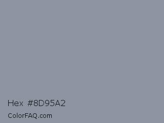 Hex #8d95a2 Color is a normal blue color and the nearest color is Manatee Crayola #8d90a1. Hex code #8d95a2 and RGB value is rgb(141,149,162). In RGB color space, this color is composed of 55% red, 58% green, 64% blue, In CMYK color space, this color is composed of 13% cyan, 8% magenta, 0% yellow , 36% black , In HSL color space, this color has a hue angle of 217° , 10% saturation and 59% lightness.