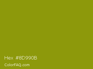 Hex #8d990b Color is a normal yellow color and the nearest color is Dark Yellow #9b870c. Hex code #8d990b and RGB value is rgb(141,153,11). In RGB color space, this color is composed of 55% red, 60% green, 4% blue, In CMYK color space, this color is composed of 8% cyan, 0% magenta, 93% yellow , 40% black , In HSL color space, this color has a hue angle of 65° , 87% saturation and 32% lightness.