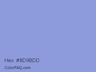 Hex #8d9bdd Color is a light blue color and the nearest color is Ceil #92a1cf. Hex code #8d9bdd and RGB value is rgb(141,155,221). In RGB color space, this color is composed of 55% red, 61% green, 87% blue, In CMYK color space, this color is composed of 36% cyan, 30% magenta, 0% yellow , 13% black , In HSL color space, this color has a hue angle of 230° , 54% saturation and 71% lightness.