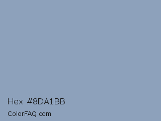 Hex #8da1bb Color is a light blue color and the nearest color is Pewter Blue #8ba8b7. Hex code #8da1bb and RGB value is rgb(141,161,187). In RGB color space, this color is composed of 55% red, 63% green, 73% blue, In CMYK color space, this color is composed of 25% cyan, 14% magenta, 0% yellow , 27% black , In HSL color space, this color has a hue angle of 214° , 25% saturation and 64% lightness.