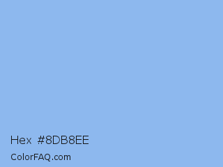 Hex #8db8ee Color is a light blue color and the nearest color is Jordy Blue #8ab9f1. Hex code #8db8ee and RGB value is rgb(141,184,238). In RGB color space, this color is composed of 55% red, 72% green, 93% blue, In CMYK color space, this color is composed of 41% cyan, 23% magenta, 0% yellow , 7% black , In HSL color space, this color has a hue angle of 213° , 74% saturation and 74% lightness.