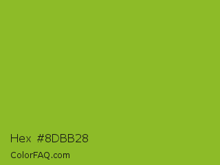 Hex #8dbb28 Color is a normal lime color and the nearest color is Atlantis #97cd2d. Hex code #8dbb28 and RGB value is rgb(141,187,40). In RGB color space, this color is composed of 55% red, 73% green, 16% blue, In CMYK color space, this color is composed of 25% cyan, 0% magenta, 79% yellow , 27% black , In HSL color space, this color has a hue angle of 79° , 65% saturation and 45% lightness.