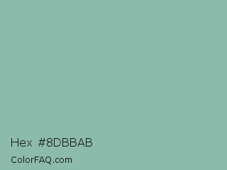 Hex #8dbbab Color is a light green color and the nearest color is Summer Green #96bbab. Hex code #8dbbab and RGB value is rgb(141,187,171). In RGB color space, this color is composed of 55% red, 73% green, 67% blue, In CMYK color space, this color is composed of 25% cyan, 0% magenta, 9% yellow , 27% black , In HSL color space, this color has a hue angle of 159° , 25% saturation and 64% lightness.