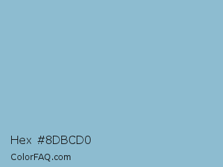Hex #8dbcd0 Color is a light blue color and the nearest color is Dark Sky Blue #8cbed6. Hex code #8dbcd0 and RGB value is rgb(141,188,208). In RGB color space, this color is composed of 55% red, 74% green, 82% blue, In CMYK color space, this color is composed of 32% cyan, 10% magenta, 0% yellow , 18% black , In HSL color space, this color has a hue angle of 198° , 42% saturation and 68% lightness.