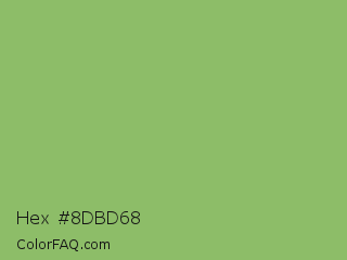 Hex #8dbd68 Color is a normal green color and the nearest color is Dollar Bill #85bb65. Hex code #8dbd68 and RGB value is rgb(141,189,104). In RGB color space, this color is composed of 55% red, 74% green, 41% blue, In CMYK color space, this color is composed of 25% cyan, 0% magenta, 45% yellow , 26% black , In HSL color space, this color has a hue angle of 94° , 39% saturation and 57% lightness.