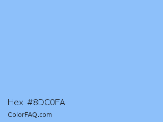 Hex #8dc0fa Color is a light blue color and the nearest color is Jordy Blue #8ab9f1. Hex code #8dc0fa and RGB value is rgb(141,192,250). In RGB color space, this color is composed of 55% red, 75% green, 98% blue, In CMYK color space, this color is composed of 44% cyan, 23% magenta, 0% yellow , 2% black , In HSL color space, this color has a hue angle of 212° , 92% saturation and 77% lightness.