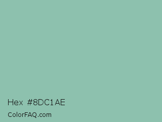 Hex #8dc1ae Color is a light green color and the nearest color is Summer Green #96bbab. Hex code #8dc1ae and RGB value is rgb(141,193,174). In RGB color space, this color is composed of 55% red, 76% green, 68% blue, In CMYK color space, this color is composed of 27% cyan, 0% magenta, 10% yellow , 24% black , In HSL color space, this color has a hue angle of 158° , 30% saturation and 65% lightness.