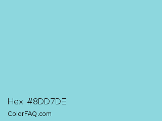 Hex #8dd7de Color is a light cyan color and the nearest color is Riptide #8be6d8. Hex code #8dd7de and RGB value is rgb(141,215,222). In RGB color space, this color is composed of 55% red, 84% green, 87% blue, In CMYK color space, this color is composed of 36% cyan, 3% magenta, 0% yellow , 13% black , In HSL color space, this color has a hue angle of 185° , 55% saturation and 71% lightness.