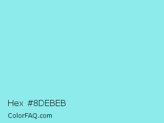 Hex #8debeb Color is a light cyan color and the nearest color is Riptide #8be6d8. Hex code #8debeb and RGB value is rgb(141,235,235). In RGB color space, this color is composed of 55% red, 92% green, 92% blue, In CMYK color space, this color is composed of 40% cyan, 0% magenta, 0% yellow , 8% black , In HSL color space, this color has a hue angle of 180° , 70% saturation and 74% lightness.