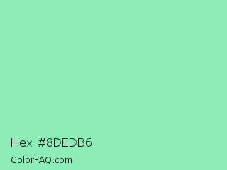 Hex #8dedb6 Color is a light green color and the nearest color is Teal Deer #99e6b3. Hex code #8dedb6 and RGB value is rgb(141,237,182). In RGB color space, this color is composed of 55% red, 93% green, 71% blue, In CMYK color space, this color is composed of 41% cyan, 0% magenta, 23% yellow , 7% black , In HSL color space, this color has a hue angle of 146° , 73% saturation and 74% lightness.