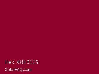 Hex #8e0129 Color is a dark rose color and the nearest color is Paprika #8d0226. Hex code #8e0129 and RGB value is rgb(142,1,41). In RGB color space, this color is composed of 56% red, 0% green, 16% blue, In CMYK color space, this color is composed of 0% cyan, 99% magenta, 71% yellow , 44% black , In HSL color space, this color has a hue angle of 343° , 99% saturation and 28% lightness.