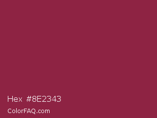 Hex #8e2343 Color is a normal rose color and the nearest color is Big Dip O Ruby #9c2542. Hex code #8e2343 and RGB value is rgb(142,35,67). In RGB color space, this color is composed of 56% red, 14% green, 26% blue, In CMYK color space, this color is composed of 0% cyan, 75% magenta, 53% yellow , 44% black , In HSL color space, this color has a hue angle of 342° , 60% saturation and 35% lightness.