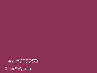 Hex #8e3253 Color is a normal rose color and the nearest color is Camelot #893456. Hex code #8e3253 and RGB value is rgb(142,50,83). In RGB color space, this color is composed of 56% red, 20% green, 33% blue, In CMYK color space, this color is composed of 0% cyan, 65% magenta, 42% yellow , 44% black , In HSL color space, this color has a hue angle of 338° , 48% saturation and 38% lightness.