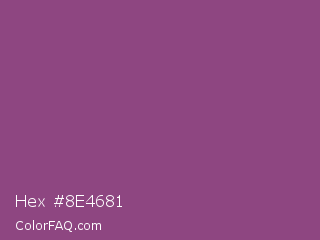 Hex #8e4681 Color is a normal magenta color and the nearest color is Plum #8e4585. Hex code #8e4681 and RGB value is rgb(142,70,129). In RGB color space, this color is composed of 56% red, 27% green, 51% blue, In CMYK color space, this color is composed of 0% cyan, 51% magenta, 9% yellow , 44% black , In HSL color space, this color has a hue angle of 311° , 34% saturation and 42% lightness.