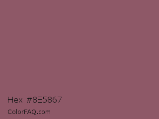 Hex #8e5867 Color is a normal rose color and the nearest color is Mauve Taupe #915f6d. Hex code #8e5867 and RGB value is rgb(142,88,103). In RGB color space, this color is composed of 56% red, 35% green, 40% blue, In CMYK color space, this color is composed of 0% cyan, 38% magenta, 27% yellow , 44% black , In HSL color space, this color has a hue angle of 343° , 23% saturation and 45% lightness.