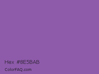 Hex #8e5bab Color is a normal purple color and the nearest color is Purpureus #9a4eae. Hex code #8e5bab and RGB value is rgb(142,91,171). In RGB color space, this color is composed of 56% red, 36% green, 67% blue, In CMYK color space, this color is composed of 17% cyan, 47% magenta, 0% yellow , 33% black , In HSL color space, this color has a hue angle of 278° , 32% saturation and 51% lightness.