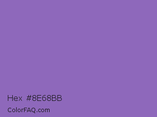 Hex #8e68bb Color is a normal violet color and the nearest color is Middle Blue Purple #8b72be. Hex code #8e68bb and RGB value is rgb(142,104,187). In RGB color space, this color is composed of 56% red, 41% green, 73% blue, In CMYK color space, this color is composed of 24% cyan, 44% magenta, 0% yellow , 27% black , In HSL color space, this color has a hue angle of 267° , 38% saturation and 57% lightness.