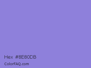 Hex #8e80db Color is a light indigo color and the nearest color is Chetwode Blue #8581d9. Hex code #8e80db and RGB value is rgb(142,128,219). In RGB color space, this color is composed of 56% red, 50% green, 86% blue, In CMYK color space, this color is composed of 35% cyan, 42% magenta, 0% yellow , 14% black , In HSL color space, this color has a hue angle of 249° , 56% saturation and 68% lightness.