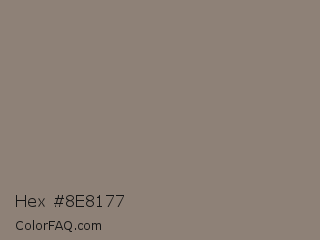Hex #8e8177 Color is a normal orange color and the nearest color is Squirrel #8f8176. Hex code #8e8177 and RGB value is rgb(142,129,119). In RGB color space, this color is composed of 56% red, 51% green, 47% blue, In CMYK color space, this color is composed of 0% cyan, 9% magenta, 16% yellow , 44% black , In HSL color space, this color has a hue angle of 26° , 9% saturation and 51% lightness.