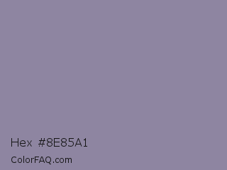 Hex #8e85a1 Color is a normal indigo color and the nearest color is Manatee Crayola #8d90a1. Hex code #8e85a1 and RGB value is rgb(142,133,161). In RGB color space, this color is composed of 56% red, 52% green, 63% blue, In CMYK color space, this color is composed of 12% cyan, 17% magenta, 0% yellow , 37% black , In HSL color space, this color has a hue angle of 259° , 13% saturation and 58% lightness.