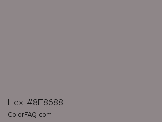 Hex #8e8688 Color is a normal red color and the nearest color is Taupe Gray #8b8589. Hex code #8e8688 and RGB value is rgb(142,134,136). In RGB color space, this color is composed of 56% red, 53% green, 53% blue, In CMYK color space, this color is composed of 0% cyan, 6% magenta, 4% yellow , 44% black , In HSL color space, this color has a hue angle of 345° , 3% saturation and 54% lightness.