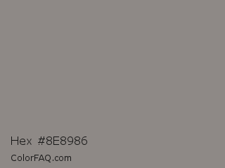 Hex #8e8986 Color is a normal orange color and the nearest color is Taupe Gray #8b8589. Hex code #8e8986 and RGB value is rgb(142,137,134). In RGB color space, this color is composed of 56% red, 54% green, 53% blue, In CMYK color space, this color is composed of 0% cyan, 4% magenta, 6% yellow , 44% black , In HSL color space, this color has a hue angle of 22° , 3% saturation and 54% lightness.