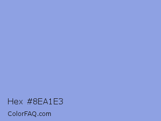 Hex #8ea1e3 Color is a light blue color and the nearest color is Portage #8b9fee. Hex code #8ea1e3 and RGB value is rgb(142,161,227). In RGB color space, this color is composed of 56% red, 63% green, 89% blue, In CMYK color space, this color is composed of 37% cyan, 29% magenta, 0% yellow , 11% black , In HSL color space, this color has a hue angle of 227° , 60% saturation and 72% lightness.