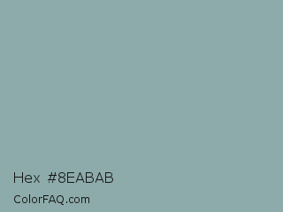 Hex #8eabab Color is a light cyan color and the nearest color is Cascade #8ba9a5. Hex code #8eabab and RGB value is rgb(142,171,171). In RGB color space, this color is composed of 56% red, 67% green, 67% blue, In CMYK color space, this color is composed of 17% cyan, 0% magenta, 0% yellow , 33% black , In HSL color space, this color has a hue angle of 180° , 15% saturation and 61% lightness.