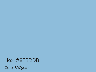 Hex #8ebddb Color is a light blue color and the nearest color is Dark Sky Blue #8cbed6. Hex code #8ebddb and RGB value is rgb(142,189,219). In RGB color space, this color is composed of 56% red, 74% green, 86% blue, In CMYK color space, this color is composed of 35% cyan, 14% magenta, 0% yellow , 14% black , In HSL color space, this color has a hue angle of 203° , 52% saturation and 71% lightness.
