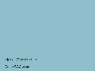 Hex #8ebfcb Color is a light cyan color and the nearest color is Half Baked #85c4cc. Hex code #8ebfcb and RGB value is rgb(142,191,203). In RGB color space, this color is composed of 56% red, 75% green, 80% blue, In CMYK color space, this color is composed of 30% cyan, 6% magenta, 0% yellow , 20% black , In HSL color space, this color has a hue angle of 192° , 37% saturation and 68% lightness.