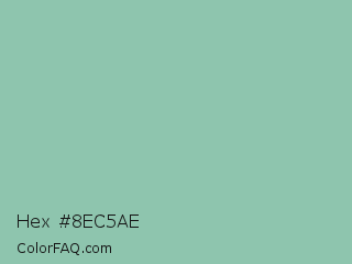 Hex #8ec5ae Color is a light green color and the nearest color is Summer Green #96bbab. Hex code #8ec5ae and RGB value is rgb(142,197,174). In RGB color space, this color is composed of 56% red, 77% green, 68% blue, In CMYK color space, this color is composed of 28% cyan, 0% magenta, 12% yellow , 23% black , In HSL color space, this color has a hue angle of 155° , 32% saturation and 66% lightness.