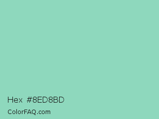Hex #8ed8bd Color is a light green color and the nearest color is Pearl Aqua #88d8c0. Hex code #8ed8bd and RGB value is rgb(142,216,189). In RGB color space, this color is composed of 56% red, 85% green, 74% blue, In CMYK color space, this color is composed of 34% cyan, 0% magenta, 13% yellow , 15% black , In HSL color space, this color has a hue angle of 158° , 49% saturation and 70% lightness.