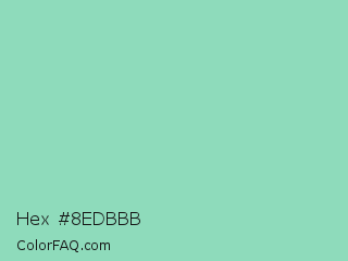 Hex #8edbbb Color is a light green color and the nearest color is Algae Green #93dfb8. Hex code #8edbbb and RGB value is rgb(142,219,187). In RGB color space, this color is composed of 56% red, 86% green, 73% blue, In CMYK color space, this color is composed of 35% cyan, 0% magenta, 15% yellow , 14% black , In HSL color space, this color has a hue angle of 155° , 52% saturation and 71% lightness.