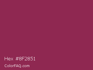 Hex #8f2851 Color is a normal rose color and the nearest color is Dark Raspberry #872657. Hex code #8f2851 and RGB value is rgb(143,40,81). In RGB color space, this color is composed of 56% red, 16% green, 32% blue, In CMYK color space, this color is composed of 0% cyan, 72% magenta, 43% yellow , 44% black , In HSL color space, this color has a hue angle of 336° , 56% saturation and 36% lightness.
