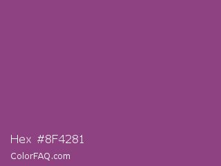 Hex #8f4281 Color is a normal magenta color and the nearest color is Plum #8e4585. Hex code #8f4281 and RGB value is rgb(143,66,129). In RGB color space, this color is composed of 56% red, 26% green, 51% blue, In CMYK color space, this color is composed of 0% cyan, 54% magenta, 10% yellow , 44% black , In HSL color space, this color has a hue angle of 311° , 37% saturation and 41% lightness.