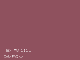 Hex #8f515e Color is a normal red color and the nearest color is Rose Taupe #905d5d. Hex code #8f515e and RGB value is rgb(143,81,94). In RGB color space, this color is composed of 56% red, 32% green, 37% blue, In CMYK color space, this color is composed of 0% cyan, 43% magenta, 34% yellow , 44% black , In HSL color space, this color has a hue angle of 347° , 28% saturation and 44% lightness.