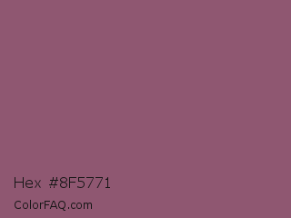 Hex #8f5771 Color is a normal rose color and the nearest color is Mauve Taupe #915f6d. Hex code #8f5771 and RGB value is rgb(143,87,113). In RGB color space, this color is composed of 56% red, 34% green, 44% blue, In CMYK color space, this color is composed of 0% cyan, 39% magenta, 21% yellow , 44% black , In HSL color space, this color has a hue angle of 332° , 24% saturation and 45% lightness.