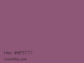 Hex #8f5777 Color is a normal magenta color and the nearest color is Sugar Plum #914e75. Hex code #8f5777 and RGB value is rgb(143,87,119). In RGB color space, this color is composed of 56% red, 34% green, 47% blue, In CMYK color space, this color is composed of 0% cyan, 39% magenta, 17% yellow , 44% black , In HSL color space, this color has a hue angle of 326° , 24% saturation and 45% lightness.