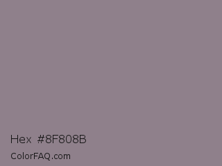 Hex #8f808b Color is a normal magenta color and the nearest color is Mamba #8e8190. Hex code #8f808b and RGB value is rgb(143,128,139). In RGB color space, this color is composed of 56% red, 50% green, 55% blue, In CMYK color space, this color is composed of 0% cyan, 10% magenta, 3% yellow , 44% black , In HSL color space, this color has a hue angle of 316° , 6% saturation and 53% lightness.